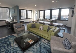 Formerly the State Office Building, Milcraft purchased River Vue apartments in 2009. After undergoing construction, the property opened in 2012 offering 16 floors (216 units)