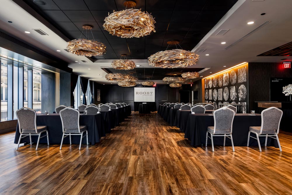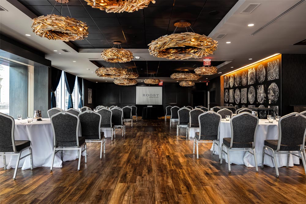 Welcome to Roost, where rustic charm meets modern elegance in an elevated event space like no other. Nestled in the heart of Downtown Pittsburgh overlooking Market Square, Roost is a captivating event venue boasting over 6000 square feet of versatile space that’s ready to bring your event to life.
