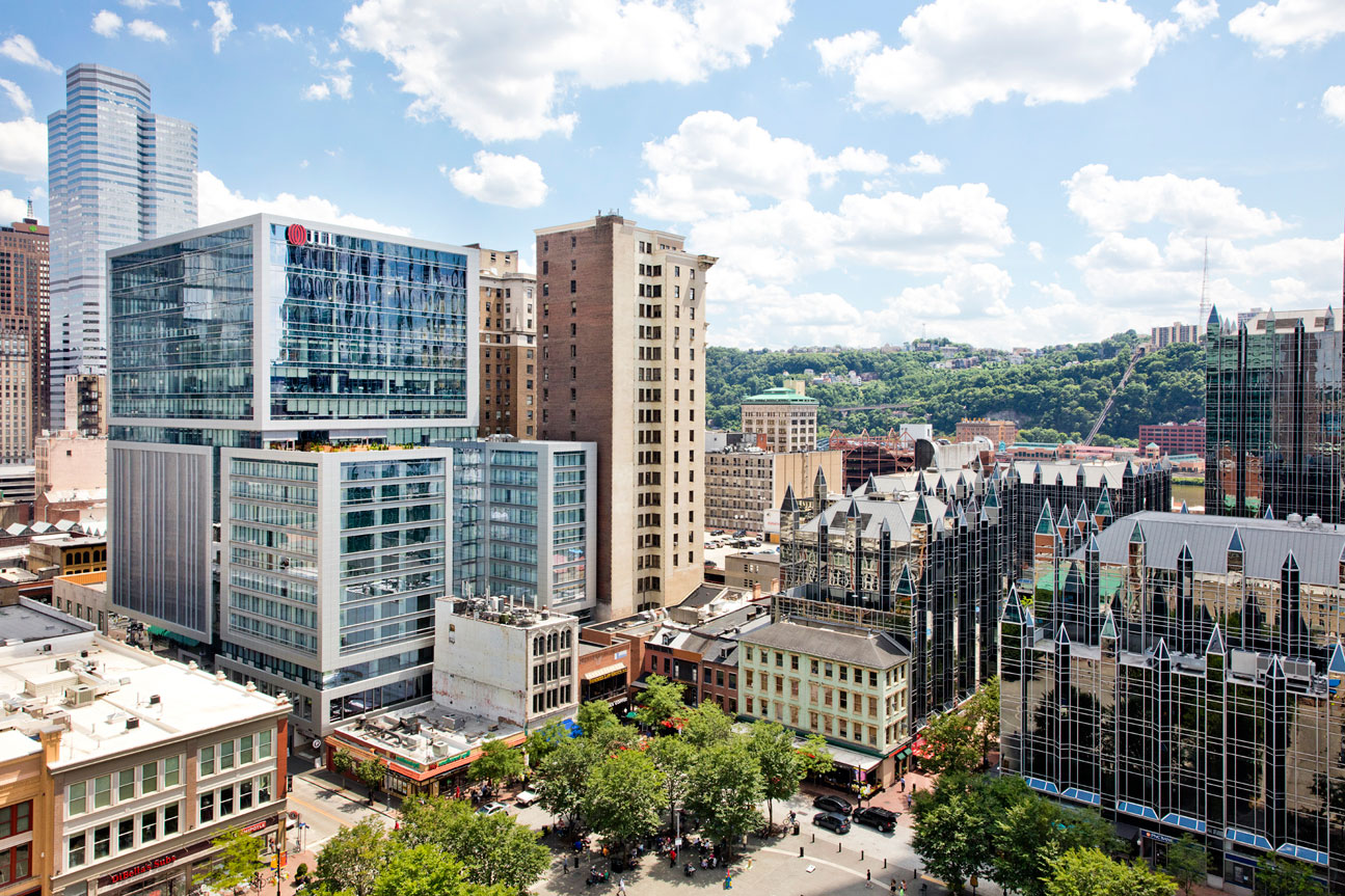 Tower Two-Sixty is a new office tower in Market Square, offering seven floors of Class A office space and an integral public parking garage with 330 spaces. The building is also home to the Hilton Garden Inn Pittsburgh Downtown, event space Roost, Revel, and Millie’s Homemade Ice Cream.